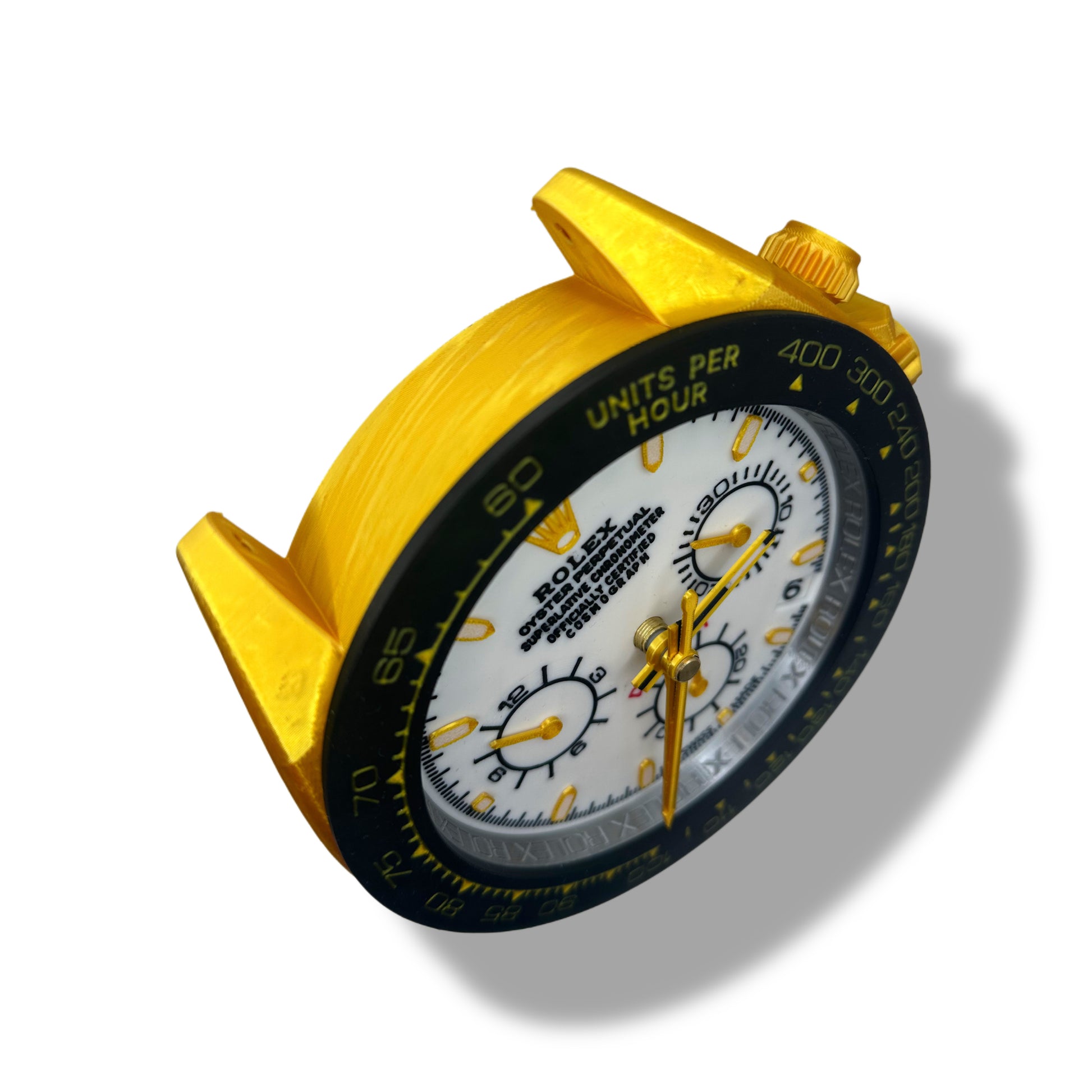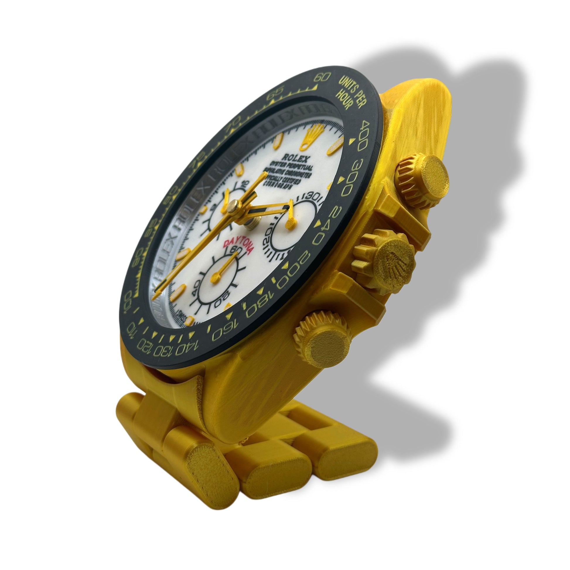 Diese 3-D-gedruckte Dekoration ist von der legendären Rolex Daytona inspiriert und macht sich perfekt als Deko Tischuhr. Mit ihrem einzigartigen Design ist sie ein Blickfang in jedem Raum. Perfekt für Uhrenliebhaber und Design-Enthusiasten.